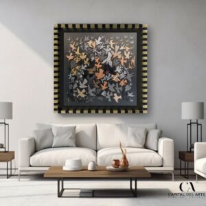 Cada ave, en su inconfundible forma, parece capturar un susurro del viento, un instante suspendido en la eternidad. Son figuras que, aunque fugaces, dejan una huella imborrable en nuestra alma. La paleta de colores, tan sofisticada como serena, habla del equilibrio entre lo material y lo espiritual, un diálogo visual donde la luz y la sombra coexisten en perfecta armonía.