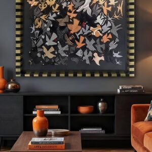 Cada ave, en su inconfundible forma, parece capturar un susurro del viento, un instante suspendido en la eternidad. Son figuras que, aunque fugaces, dejan una huella imborrable en nuestra alma. La paleta de colores, tan sofisticada como serena, habla del equilibrio entre lo material y lo espiritual, un diálogo visual donde la luz y la sombra coexisten en perfecta armonía.